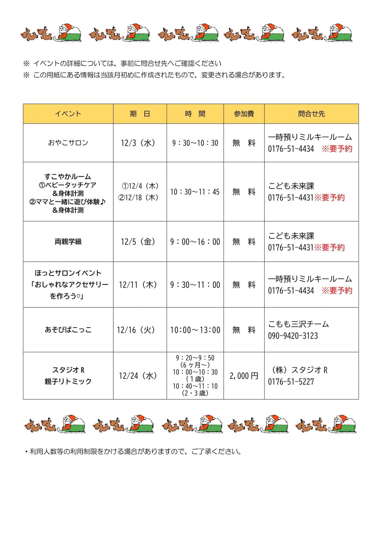 12月イベント情報